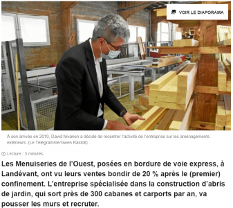 Les ventes des Menuiseries de l'Ouest ont augmenté de 20% depuis le premier confinement. En pleine croissance, l'entreprise morbihannaise s'apprête à recruter de nouveaux talents pour faire face à la forte demande d'abris de jardin sur-mesure.
